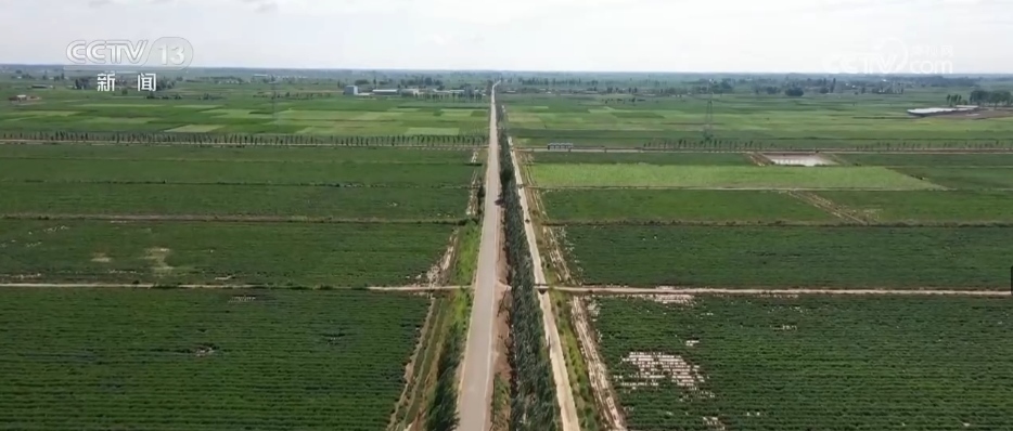 2017年,巴彥淖爾市規(guī)劃了484萬畝鹽堿化耕地“改鹽增草(飼)興牧”示范工程,拉開了全市改良鹽堿地的序幕。通過大規(guī)模土地整理,愛國村零散的土地被整合了起來?,F(xiàn)在行走在愛國村的田間地頭,遠看路相連、渠相通、溝配套。近看有新的發(fā)現(xiàn),在地下40公分的位置,鋪設了一層秸稈,鹽隨水來、隨水去。在水分向上蒸發(fā)的同時,能保證鹽分被阻攔在秸稈下面,這個被稱為“上膜下秸”技術(shù)。而對于重度鹽堿地,當?shù)卦诘叵?.8米的位置,每隔50公分鋪設了一些排水管道,能保證地下的水分隨時通過這些管道流到排水井里,最大程度地讓作物不受傷害,耕地質(zhì)量提高1—2個等級。