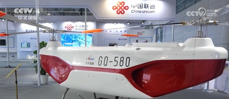 海洋裝備不僅能下海,而且還能上天。這臺艦載無人直升機可以實現(xiàn)在船艦上無人起降。