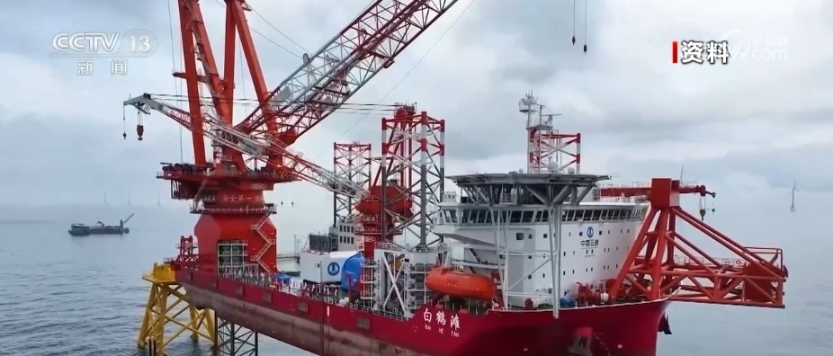這是目前國內(nèi)最先進的海上風電安裝平臺“白鶴灘”號的模型,“白鶴灘”號也是全球首艘新一代2000噸級海上風電安裝平臺。