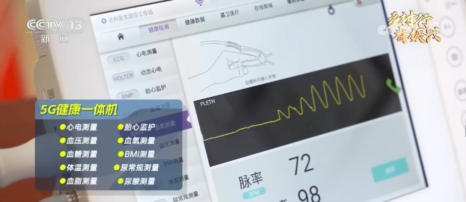 這臺只有A4紙大小的5G健康一體機(jī),是由省里統(tǒng)一配備的。除了能快速完成十多項(xiàng)檢查,還能通過5G網(wǎng)絡(luò),隨時將心電、胎心數(shù)據(jù)上傳到市縣級醫(yī)院的診斷中心,由那里24小時值班的醫(yī)生進(jìn)行診斷并出具報(bào)告。
