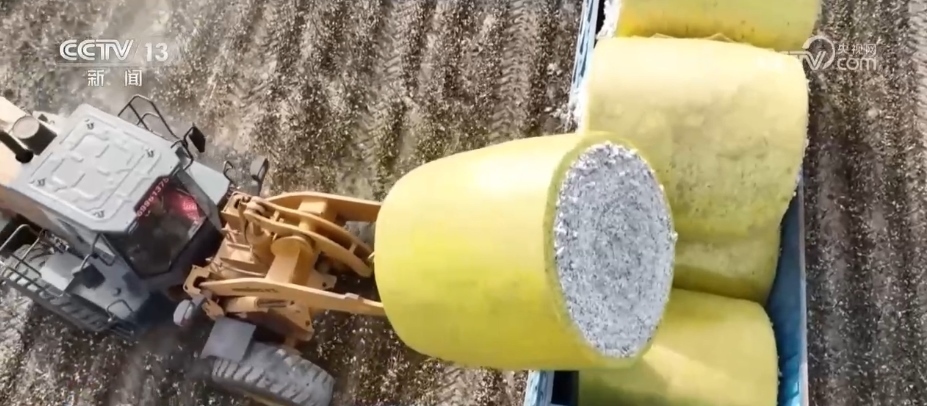 在庫爾勒市普惠鄉(xiāng)的棉花地里,采棉機(jī)快速將棉花從棉稈上脫離,采摘、壓縮、打包,全流程作業(yè)一氣呵成。