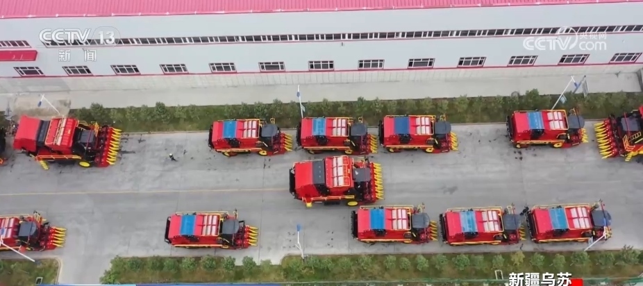 在新疆烏蘇,這家國產(chǎn)智能采摘打包機(jī)的工廠,記者見到數(shù)十臺機(jī)器整裝待發(fā),即將走出國門。
