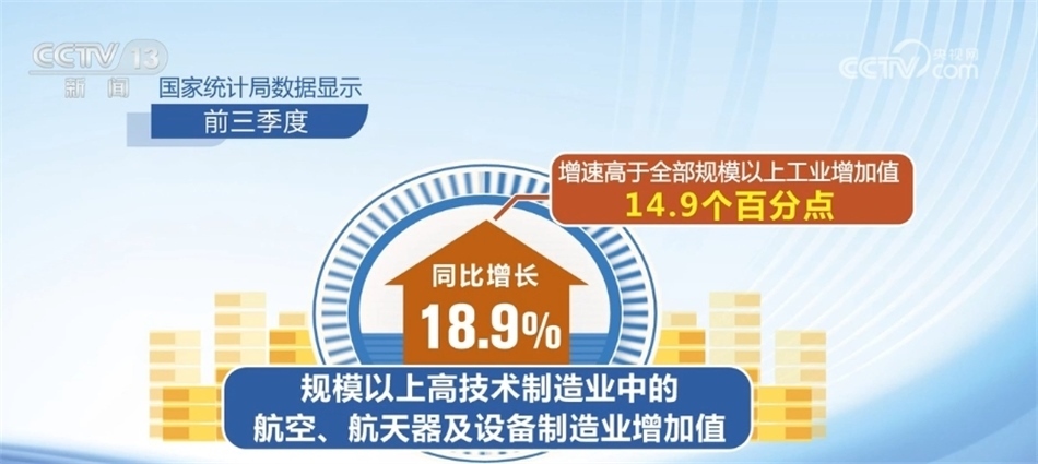 高技術(shù)產(chǎn)業(yè)投資動力強勁,新動能領(lǐng)域保持較快增長。國家統(tǒng)計局?jǐn)?shù)據(jù)顯示,前三季度,高技術(shù)制造業(yè)投資和高技術(shù)服務(wù)業(yè)投資分別同比增長11.3%和11.8%,分別高于全部固定資產(chǎn)投資增速8.2和8.7個百分點,持續(xù)推動產(chǎn)業(yè)轉(zhuǎn)型升級。規(guī)模以上高技術(shù)制造業(yè)中的航空、航天器及設(shè)備制造業(yè)增加值同比增長18.9%,增速高于全部規(guī)模以上工業(yè)增加值14.9個百分點。