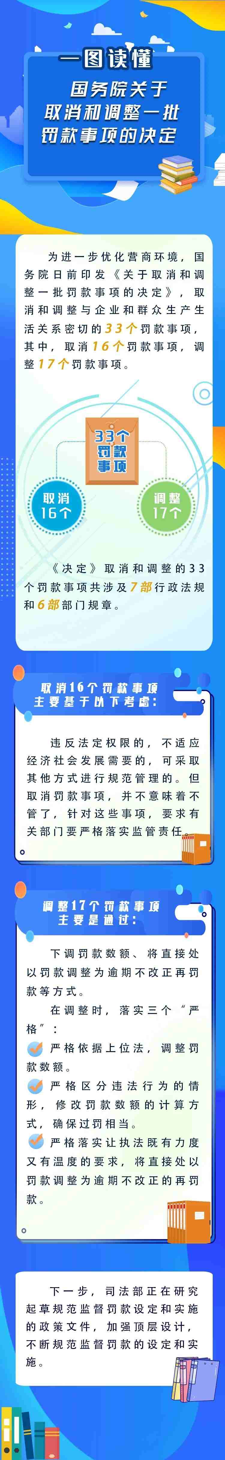 司法部有關(guān)負(fù)責(zé)人表示,取消罰款事項并不意味著不管了,對于這些事項,有關(guān)部門要嚴(yán)格落實監(jiān)管責(zé)任。