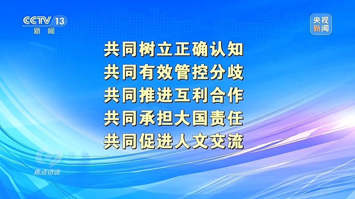 中國(guó)人民大學(xué)國(guó)際關(guān)系學(xué)院教授 刁大明:現(xiàn)在看舊金山這次會(huì)晤本身,中方非常清晰地從負(fù)責(zé)任大國(guó)角度出發(fā),從對(duì)歷史、對(duì)人民、對(duì)世界角度出發(fā),提出了一個(gè)中美兩國(guó)正確相處之道?!拔鍌€(gè)共同”是中國(guó)提出的一個(gè)正確相處之道,也是中國(guó)從負(fù)責(zé)任角度出發(fā),為穩(wěn)定中美關(guān)系,為更多增進(jìn)全球福祉提出中國(guó)方案。