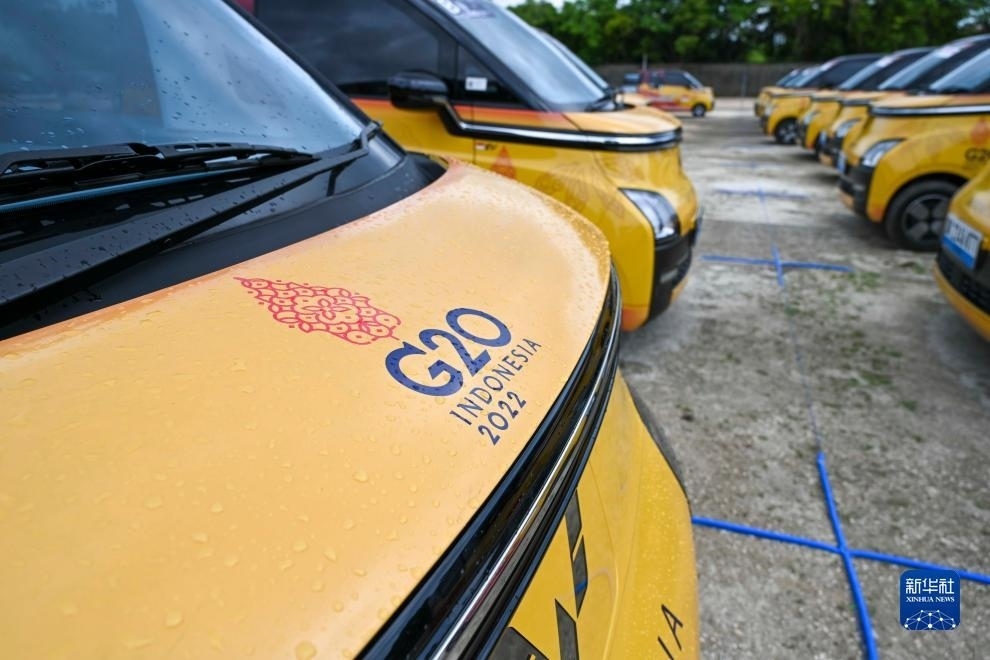 這是2022年11月12日在印度尼西亞巴厘島二十國(guó)集團(tuán)(G20)領(lǐng)導(dǎo)人第十七次峰會(huì)主會(huì)場(chǎng)拍攝的五菱新能源車。新華社記者 徐欽 攝