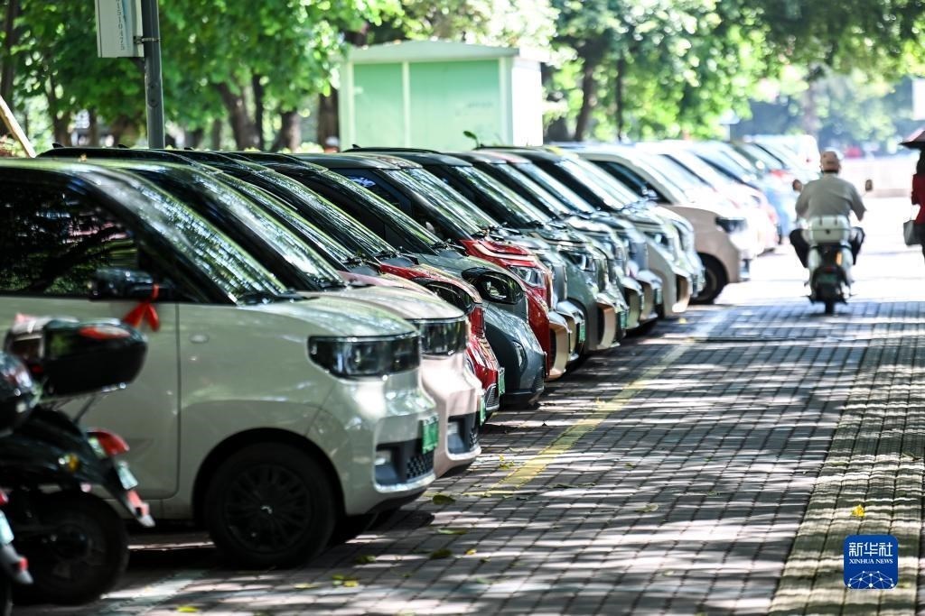 這是在廣西柳州市街頭拍攝的一處新能源汽車專用停車區(qū)(10月16日攝)。新華社記者 曹祎銘 攝