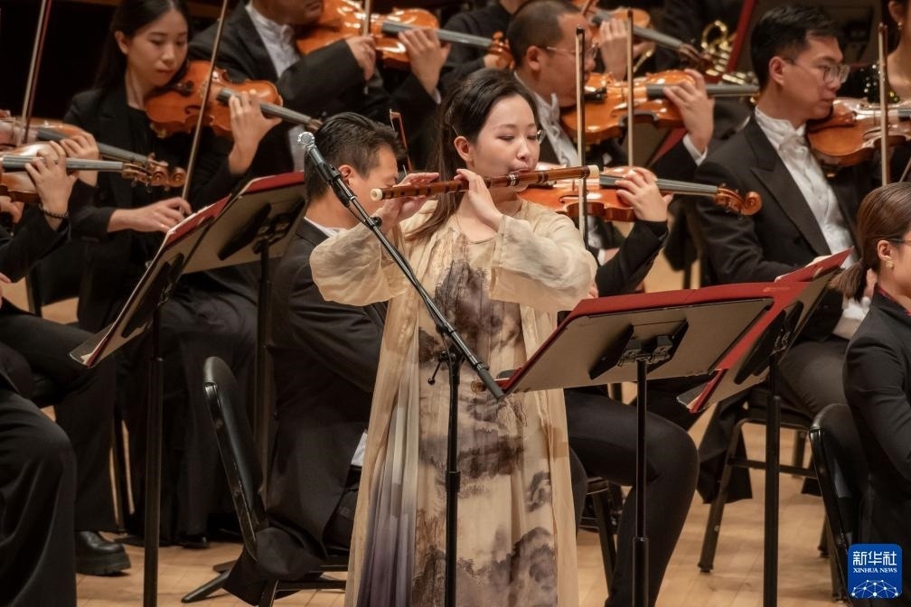 11月24日,中央音樂學院竹笛演奏家范臨風在美國紐約卡內基音樂廳進行演出。新華社發(fā)(邁克爾·維奧拉果攝)
