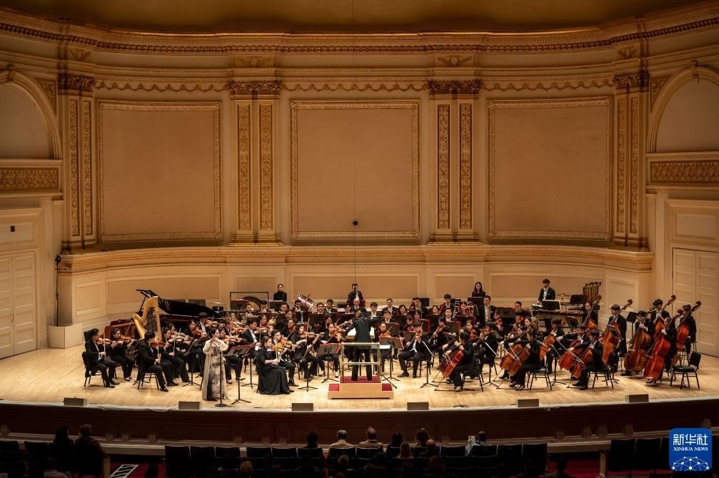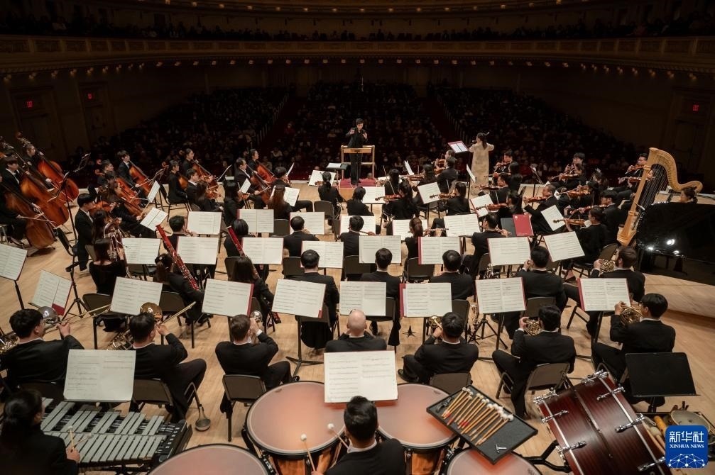 11月24日,來自中央音樂學院交響樂團的藝術家在美國紐約卡內基音樂廳進行演出。新華社發(fā)(邁克爾·維奧拉果攝)