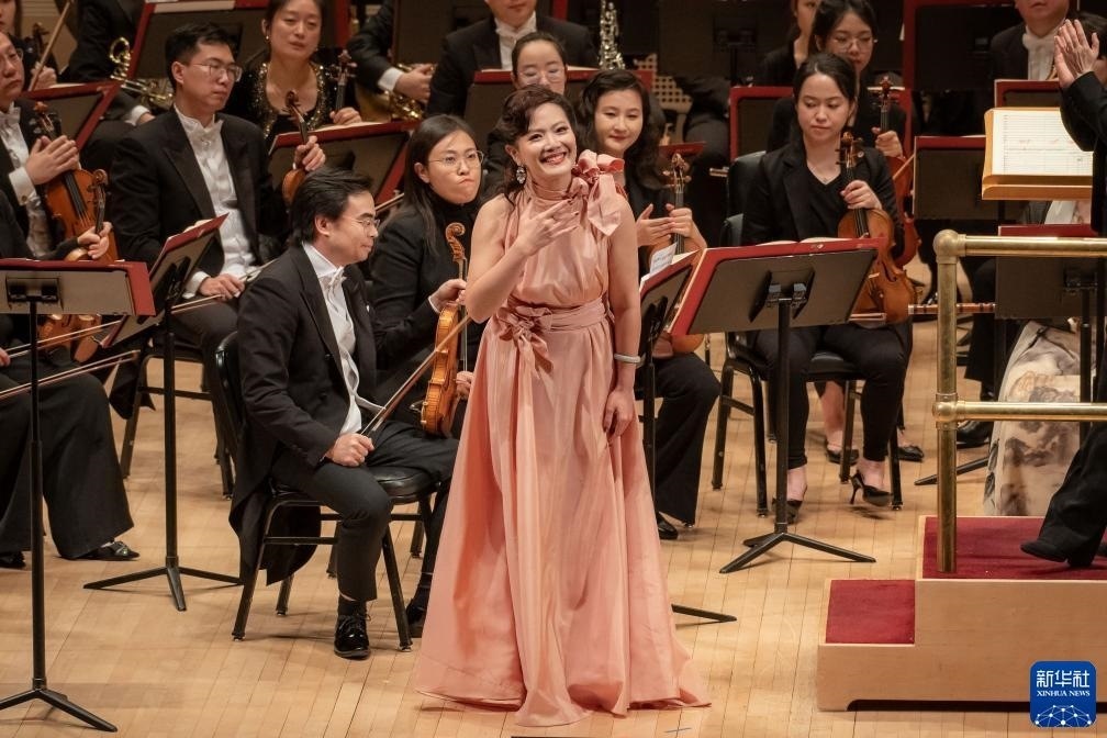 11月24日,中央音樂學院女高音歌唱家宋元明在美國紐約卡內基音樂廳進行演出。新華社發(fā)(邁克爾·維奧拉果攝)