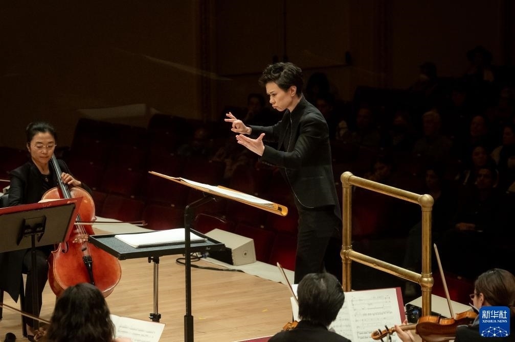 11月24日,中央音樂學院指揮家陳琳在美國紐約卡內基音樂廳執(zhí)棒本次演出。新華社發(fā)(邁克爾·維奧拉果攝)