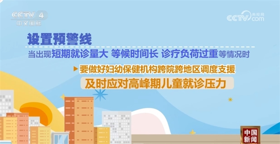 設(shè)置預(yù)警線,當(dāng)出現(xiàn)短期就診量大、等候時間長、診療負(fù)荷過重等情況時,要做好婦幼保健機構(gòu)跨院跨地區(qū)調(diào)度支援,及時應(yīng)對高峰期兒童就診壓力。