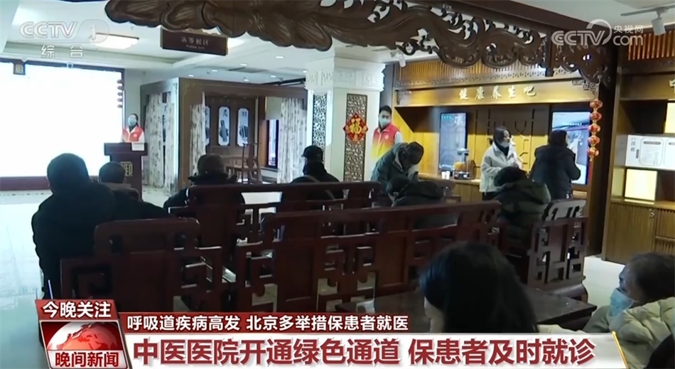 中醫(yī)醫(yī)院也在應(yīng)對(duì)呼吸道疾病就診高峰方面推出多項(xiàng)舉措。在北京市鼓樓中醫(yī)醫(yī)院,記者在候診區(qū)看到,醫(yī)務(wù)人員正在給現(xiàn)場(chǎng)候診和取藥的患者進(jìn)行預(yù)防流感的醫(yī)學(xué)講解。醫(yī)院還對(duì)有需求的老人開通綠色通道,及時(shí)收入醫(yī)院治療。