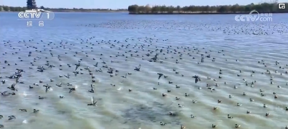 有著“鳥中大熊貓”之稱的東方白鸛瀕危鳥類2023年有500多只飛到了這里。近年,當(dāng)?shù)赝ㄟ^(guò)退漁還湖、電力設(shè)施入地等環(huán)境修復(fù)美化工程,生態(tài)質(zhì)量大幅提升。