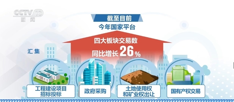 另外,全國公共資源交易平臺(tái)上的交易信息匯集發(fā)布量又創(chuàng)新高。截至目前,2023年國家平臺(tái)匯集工程建設(shè)項(xiàng)目招標(biāo)投標(biāo)、政府采購、土地使用權(quán)和礦業(yè)權(quán)出讓、國有產(chǎn)權(quán)交易這四大板塊交易數(shù)同比增長26%。