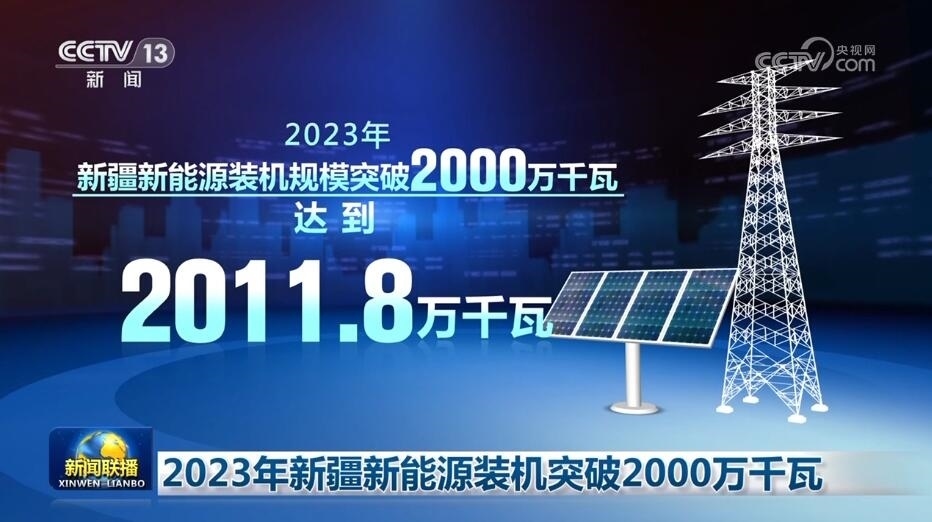 央視網(wǎng)消息(新聞聯(lián)播):國家電網(wǎng)最新數(shù)據(jù)顯示,2023年,新疆新能源裝機規(guī)模突破2000萬千瓦,達(dá)到2011.8萬千瓦,是2022年全年總和的5倍,新增新能源裝機規(guī)模在全國排名第一,約占到西北電網(wǎng)的42%。