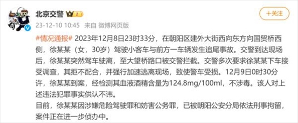 ·北京交警通報:一女子醉駕肇事逃逸并撞壞警車,已被刑拘。