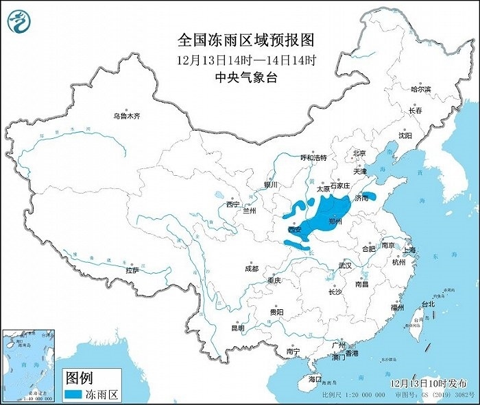 預(yù)計(jì),12月13日14時(shí)至14日14時(shí),陜北南部和秦嶺東部、山西南部、河南北部和西部、河北南部、山東中部、湖北西北部等地的部分地區(qū)有凍雨。