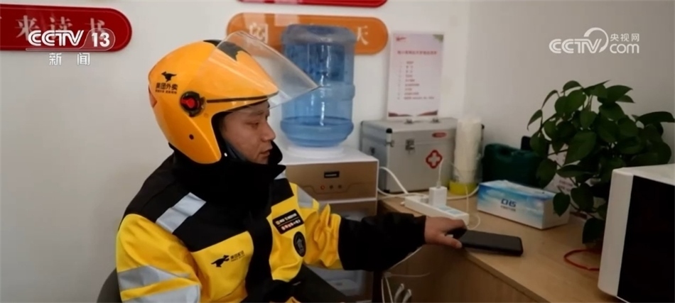 由于氣溫持續(xù)走低,外賣訂單量激增。在菏澤市定陶區(qū),當(dāng)?shù)卮蛟炝?0家休息驛站,為外賣員、快遞員等戶外作業(yè)人員提供熱水、手機(jī)充電、熱飯就餐等服務(wù)。