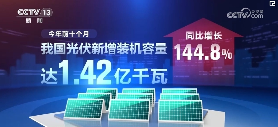 2023年前10個月,我國光伏新增裝機容量達(dá)1.42億千瓦,同比增長144.8%。