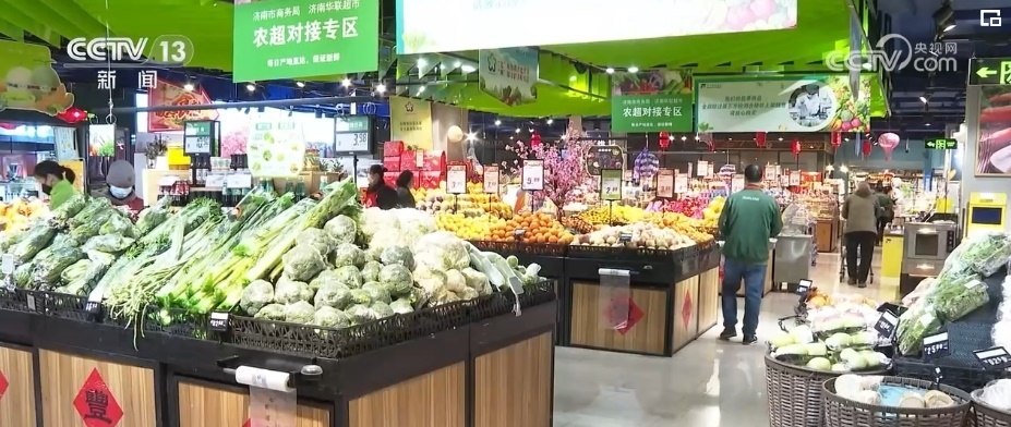 在山東濟南,當?shù)丶訌娊M織貨源、增加庫存,全力保障商超、市場正常經(jīng)營。