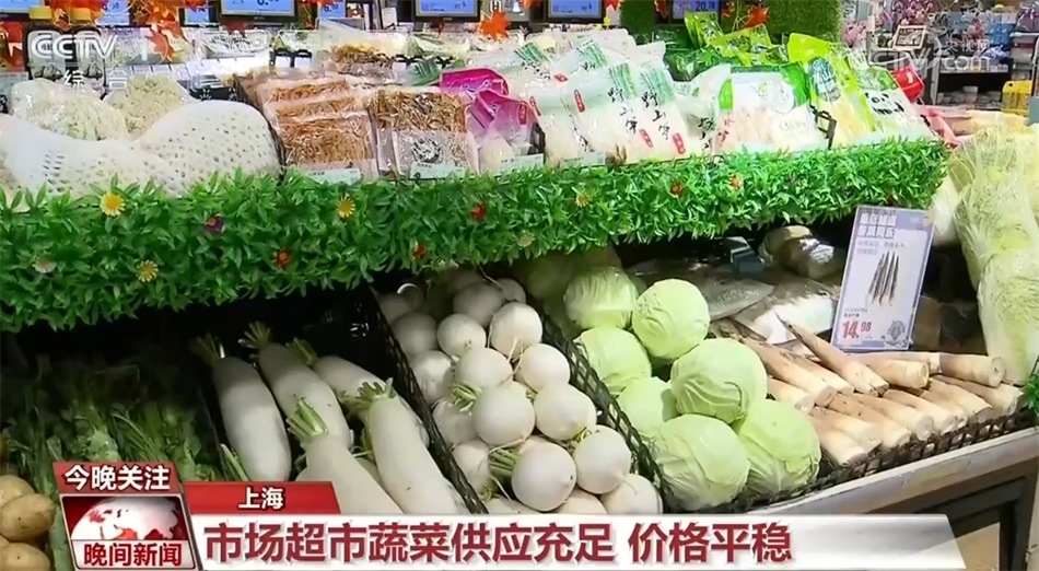 強(qiáng)冷空氣來襲,上海各菜場、超市和批發(fā)市場的商家們多措并舉,全力保供穩(wěn)價。在上海市金沙江路上的一家超市里,記者看到,五顏六色的蔬菜水果堆滿貨架,品種豐富,價格也比較穩(wěn)定。