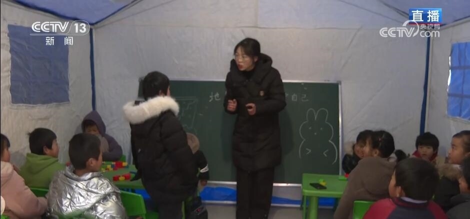 總臺(tái)記者 馬麗:我現(xiàn)在是在積石山縣前嶺小學(xué)附屬幼兒園。目前,這里也是前嶺村的一個(gè)集中安置點(diǎn)。地震發(fā)生后,這里的主體校舍沒有明顯受損,并且校內(nèi)廣場有大面積的空地,所以被作為了臨時(shí)安置點(diǎn),來安置附近的40余名村民。其中,有近30名是小學(xué)生和幼兒園的小朋友。他們有些是村民自己的孩子,有些是附近親戚家的孩子??紤]到這里的環(huán)境更加穩(wěn)定和保暖,孩子們也被聚集到了這里?,F(xiàn)在,正是早起的時(shí)間,在安置點(diǎn)也升起了裊裊炊煙,陽光從遠(yuǎn)處照了過來。