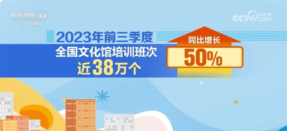 據(jù)統(tǒng)計(jì),2023年前三季度公共圖書館總流通人次同比增長55.2%;2023年前三季度,全國文化館培訓(xùn)班次近38萬個(gè),同比增長50%;文化館(群藝館)服務(wù)人次同比增長142.7%。