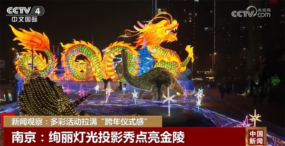 新年期間,南京大報恩寺遺址上演絢麗的燈光投影秀,12月31日晚上,游客還可以免費參加蓋章活動,四色“套色印章”既有文化內(nèi)涵,又充滿新年祝福。