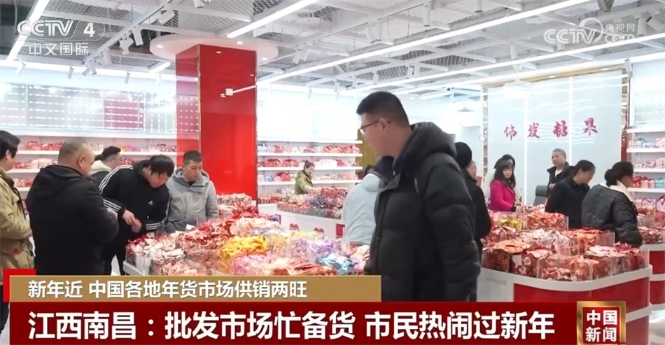在江西南昌的這個(gè)批發(fā)市場(chǎng),琳瑯滿(mǎn)目的商品擺滿(mǎn)貨架,糖果、干貨也到了銷(xiāo)量最好的時(shí)候。一大早,這里就迎來(lái)了前來(lái)購(gòu)物的市民。