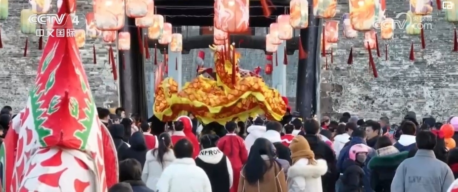 張燈結(jié)彩迎接新年。在內(nèi)蒙古呼和浩特,各式花燈點(diǎn)亮節(jié)日夜晚,一些街道和廣場上多樣燈組,將城市裝扮得絢麗多彩。在河南漯河河上街古鎮(zhèn),形式多樣的羊皮燈籠、荷花燈、詩詞燈烘托出濃濃的新年氛圍。在安徽黃山巖寺老街,大紅燈籠與粉墻黛瓦交相輝映,傳統(tǒng)的舞龍表演穿梭其中,祈愿美好新年。