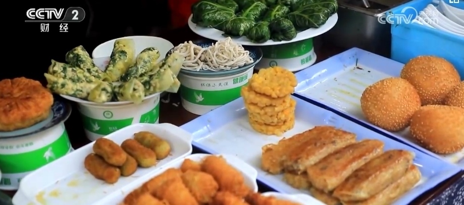 在古街上,一杯熱氣騰騰的綠茶,配上當(dāng)?shù)氐碾u子馃、肉沉子,是很多游客特地趕來吃的新年第一份早餐。店主說今天光一個(gè)早上豆?jié){就賣了500多碗。