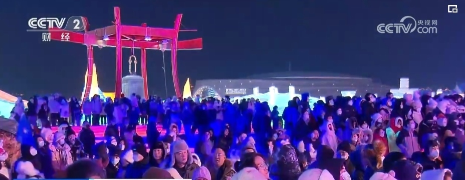 總臺央視記者 郭晉華:在這個冰雕玉砌的世界,一簇簇焰火映襯著流光溢彩的冰雕建筑群,帶著人們對新年的祈盼噴薄而出。哈爾濱冰雪大世界,雖然現(xiàn)在室外氣溫達(dá)到了零下20多度,但是大家冰雪跨年的熱情卻是點燃了全場,來自全國各地的游客在這場狂歡中一起迎接新年的到來。