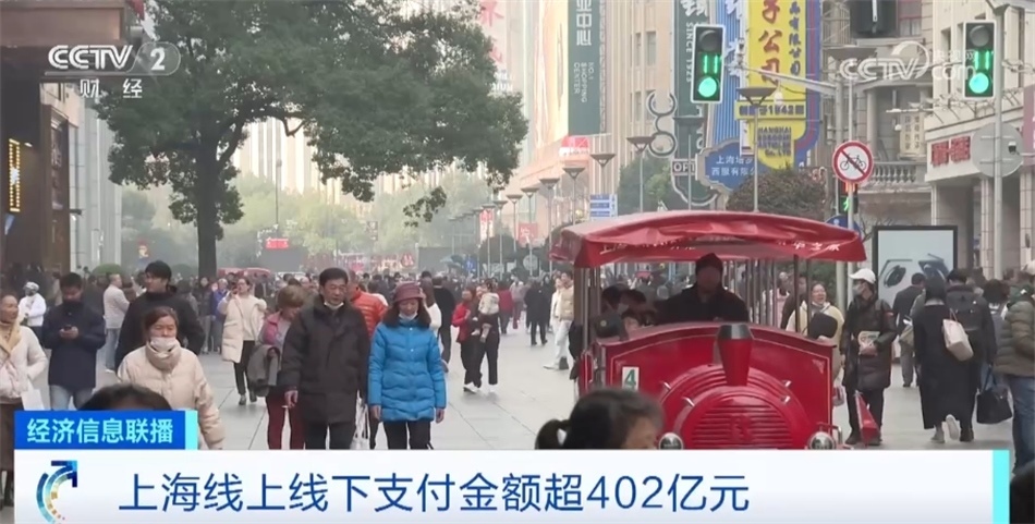 上海市商務(wù)委數(shù)據(jù)顯示,元旦假期期間,上海全市線下消費支付金額255.6億元,比去年節(jié)日同期增長38.7%,線上消費支付金額147.1億元,比去年節(jié)日同期增長7.8%。監(jiān)測上海全市35個重點商圈的線下客流總量超過了1500萬人次。
