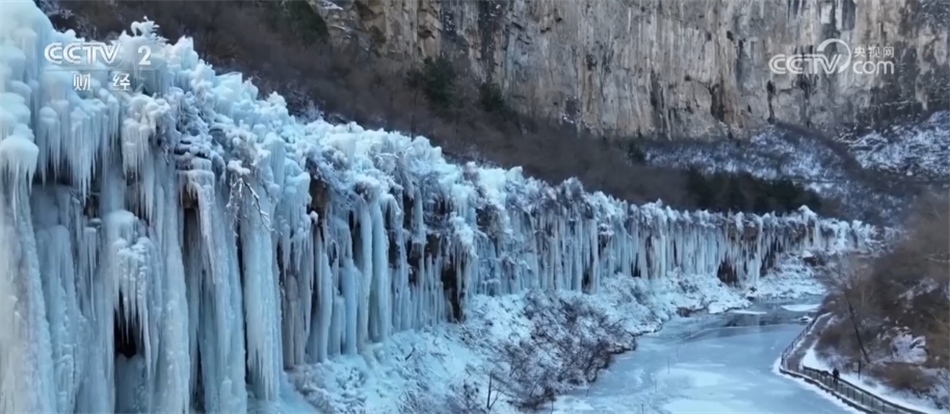 據(jù)了解,太行山大峽谷屬于喀斯特峽谷地貌,水源充沛,當頁巖中滲出的泉水遇上低溫便會凝結(jié)成冰掛,宛如“冰川世界”。