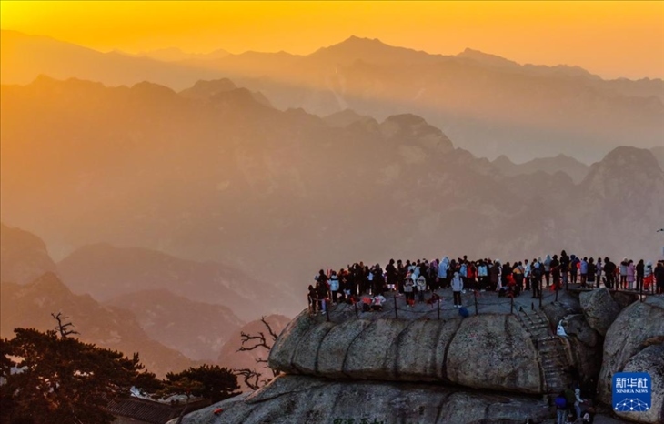 2023年12月31日,游客在位于陜西省渭南市的華山西峰賞景(無人機(jī)照片)。元旦假期期間,人們用各種方式樂享時(shí)光,迎接新年,歡度假期。新華社發(fā)(汪艷 攝)