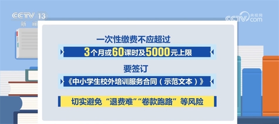 警惕防范資金安全風(fēng)險(xiǎn)。參加非學(xué)科類培訓(xùn)的廣大學(xué)生及家長(zhǎng)要通過全國(guó)統(tǒng)一的“校外培訓(xùn)家長(zhǎng)端”App選課、繳費(fèi)、退費(fèi)及投訴。一次性繳費(fèi)不應(yīng)超過3個(gè)月或60課時(shí)及5000元上限,要簽訂《中小學(xué)生校外培訓(xùn)服務(wù)合同(示范文本)》,切實(shí)避免“退費(fèi)難”“卷款跑路”等風(fēng)險(xiǎn)。
