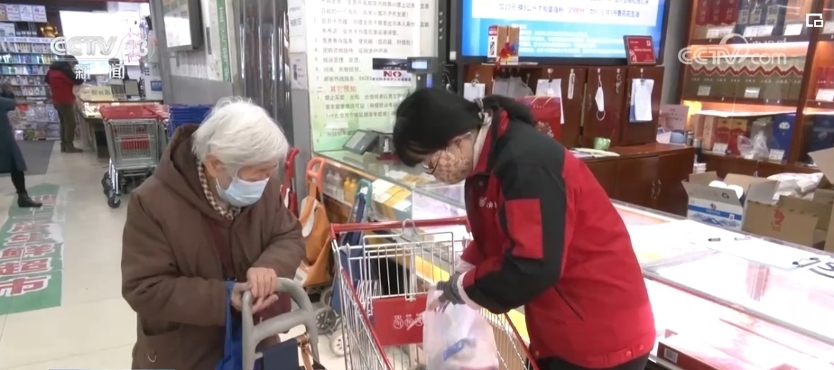 早上8時(shí),社區(qū)附近的東單菜市場(chǎng)開(kāi)門(mén)營(yíng)業(yè)。87歲的曹奶奶今天用積分換了很多東西,菜市場(chǎng)的工作人員提出免費(fèi)幫她送到家里。