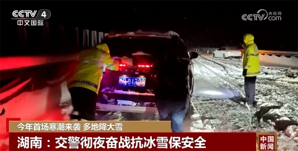 湖南西部、北部以及部分高海拔山區(qū)出現(xiàn)大雪,湖南交警徹夜奮戰(zhàn)抗冰雪,及時(shí)排除險(xiǎn)情,全力以赴保證公路安全暢通。在長芷高速,因上坡路段積雪較深,部分小型汽車被困無法前行,婁底高速警察聯(lián)合司乘人員將百余臺(tái)車輛逐一推上坡道。