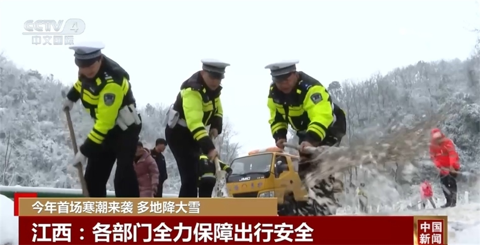 從21日開始,江西各地迎來了今年首場大范圍降雪天氣。德安縣迅速啟動(dòng)惡劣天氣應(yīng)急預(yù)案,加強(qiáng)重點(diǎn)路口、路段的交通秩序管控。在梅嶺風(fēng)景區(qū),因?yàn)榇笱⒙访娉霈F(xiàn)結(jié)冰,當(dāng)?shù)夭扇 跋迺r(shí)、限路、限流”的工作措施,對景區(qū)道路適時(shí)實(shí)施交通管制,保障游客出行游玩安全。在九江市武寧縣,工作人員清理倒伏的樹枝、撒融雪劑、鏟冰除雪、疏導(dǎo)交通,為過往的司機(jī)提供幫助。