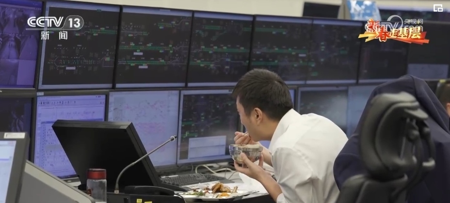 記者的眼前布滿了電腦監(jiān)控屏,調(diào)度員“標(biāo)配”兩個動作:低頭記錄信息、抬頭盯著屏幕,就連吃飯也幾乎雙目平視。