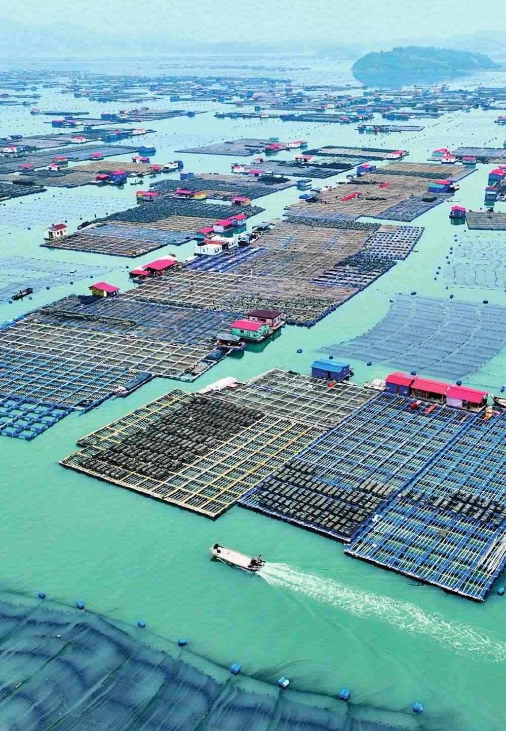 晨光灑在海面,萬頃碧波間,一列列網(wǎng)箱如同阡陌縱橫的海上農(nóng)田,色澤金黃的大黃魚悠然歡游,穿梭其間的漁民們徜徉在“金黃色的美夢”中。