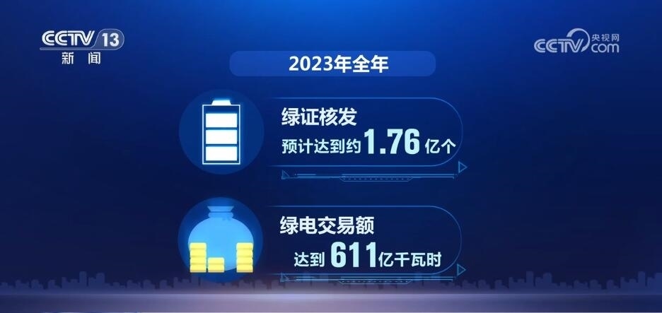 全覆蓋,是2023年我國綠電消費(fèi)的一大關(guān)鍵詞。通過給已建檔立卡的可再生能源發(fā)電項(xiàng)目全部核發(fā)綠證,我國成為全球最大的綠證供應(yīng)市場。全年綠證核發(fā)預(yù)計(jì)達(dá)到約1.76億個,綠電交易額達(dá)到611億千瓦時,分別是2022年的7.8倍和10.5倍。