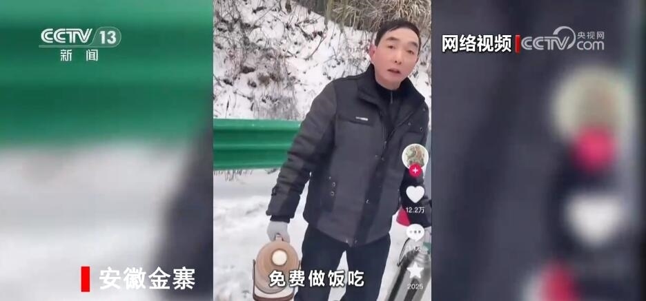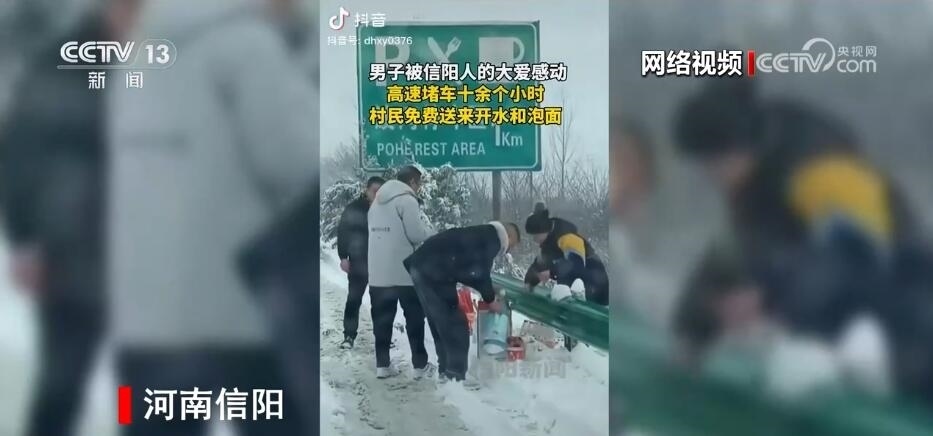 央視網(wǎng)消息:這幾天,很多人都在回家的路上遭遇了雨雪冰凍天氣,有的甚至在高速路上被困了十多個(gè)小時(shí)。面對(duì)這種情況,各地交通部門都在積極采取措施,為返鄉(xiāng)車輛做好保障。而與此同時(shí),很多受災(zāi)道路附近的居民紛紛走出家門,為這些受困人員送來熱水、飯菜。接下來,我們通過一組短視頻,來看一下發(fā)生在暴雪之中的溫暖故事。