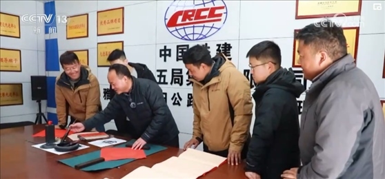 今年恰逢藏歷新年和農(nóng)歷春節(jié)同一天,堅守崗位的同事們一起慶祝新年的到來,項(xiàng)目部的藏族小伙還用藏文寫下了新年祝福。