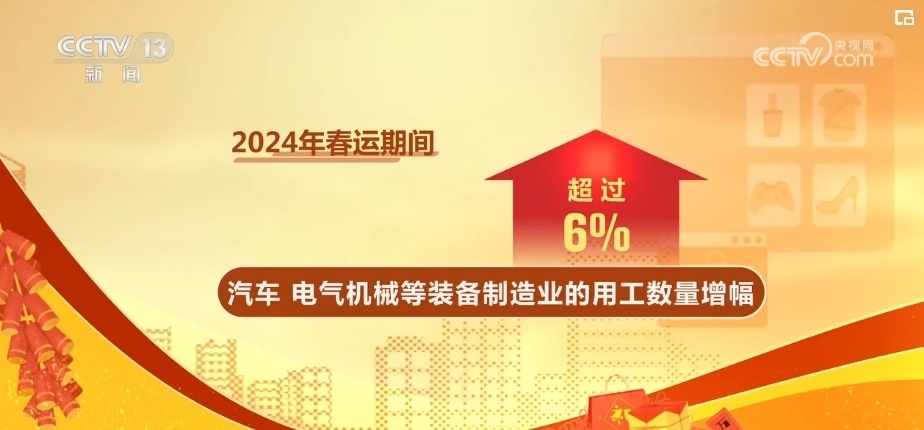其中,食品和家具制造等產業(yè)的用工數(shù)量增幅最明顯,達到了6.6%。同時,汽車、電氣機械等裝備制造業(yè)的用工數(shù)量增幅也超過了6%。