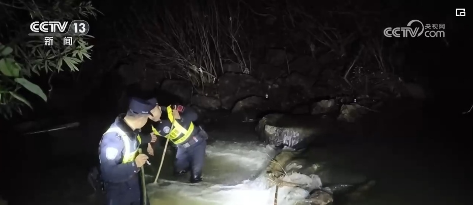 在廣西崇左的中越邊境線上,憑祥邊境管理大隊三色橋抵邊警務(wù)室執(zhí)勤民警在深夜里巡邊,檢查邊境防護(hù)設(shè)施,遇到湍急的溪流,挽起褲腳涉水而過。