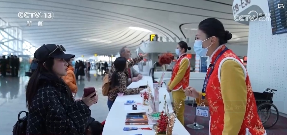 2月9日,超過13萬名旅客通過北京大興機(jī)場乘飛機(jī)旅行或回家過年。為了給乘客的旅途增一絲暖意,添一分平安,大興機(jī)場年輕的服務(wù)大使們,在崗位上默默奉獻(xiàn)著。