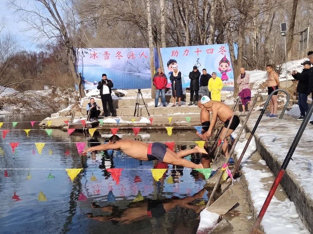 內蒙古呼倫貝爾市扎蘭屯市的冬泳愛好者在進行冬泳。(溫秀華攝 新華社發(fā))