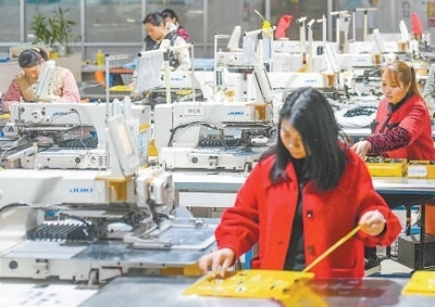 正月初六,湖南永州市道縣高新技術產業(yè)園區(qū)內,工人在流水線上工作。蔣克青攝(新華社發(fā))